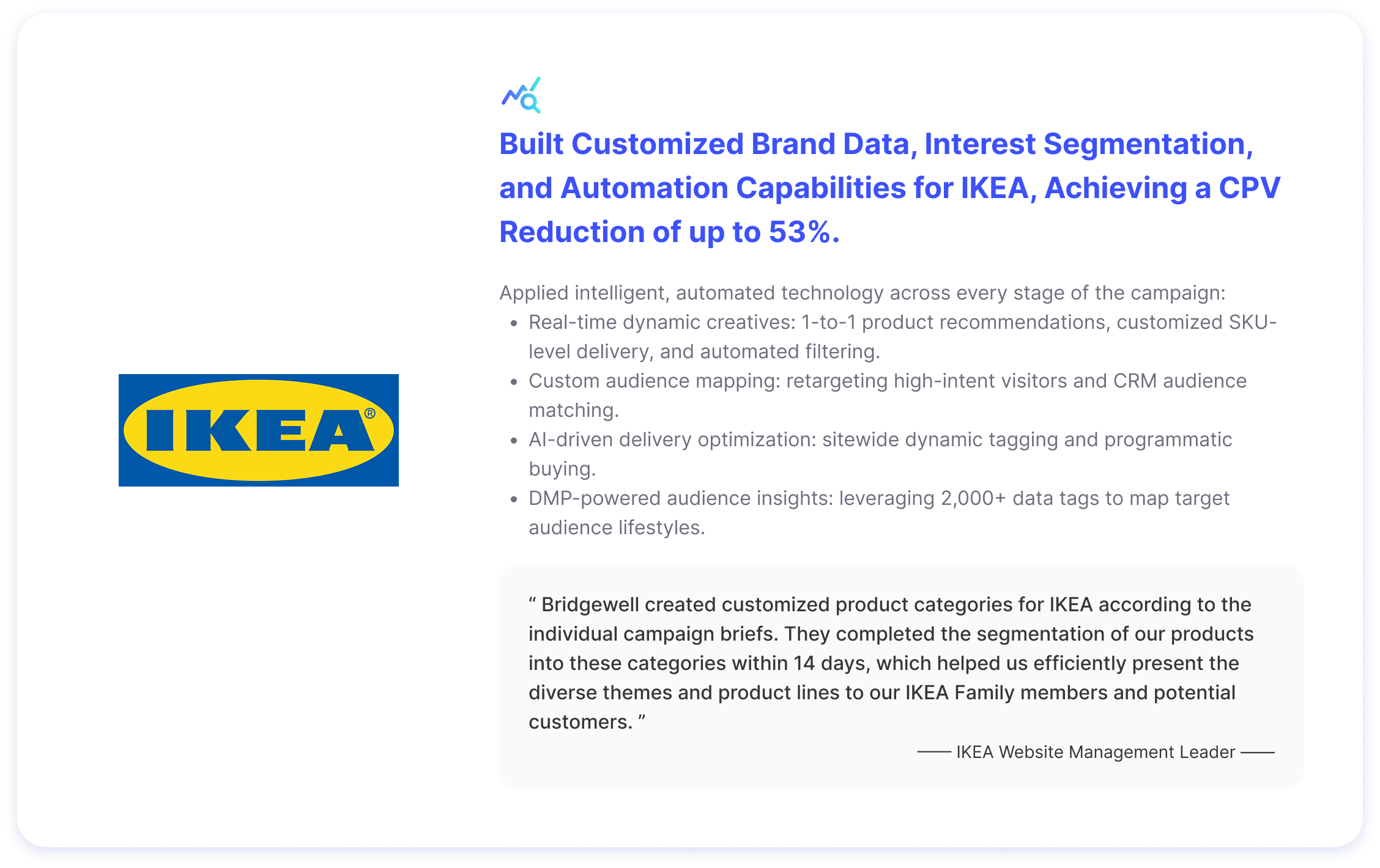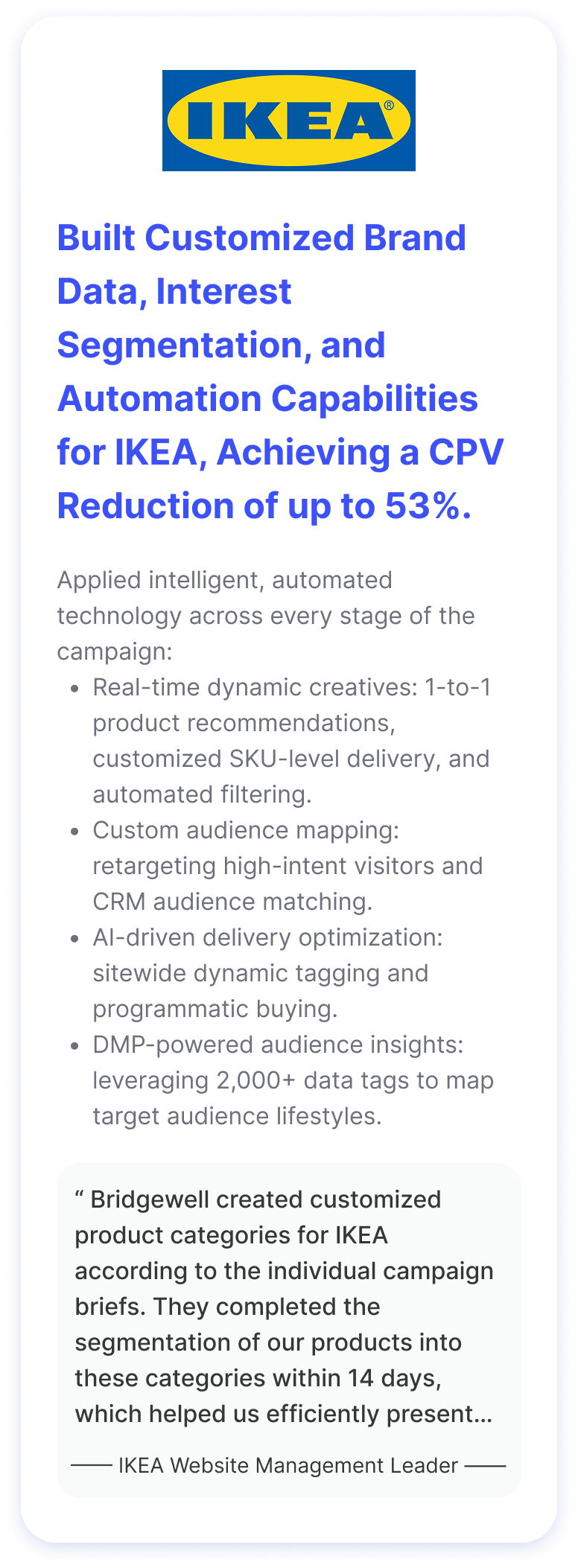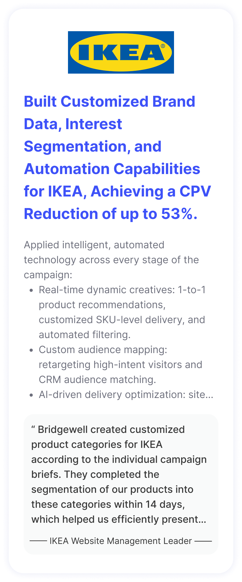 AI-optimized bidding and audience expansion models allocate spend to the most promising users–turning every marketing dollar into high-value, conversion-ready traffic.