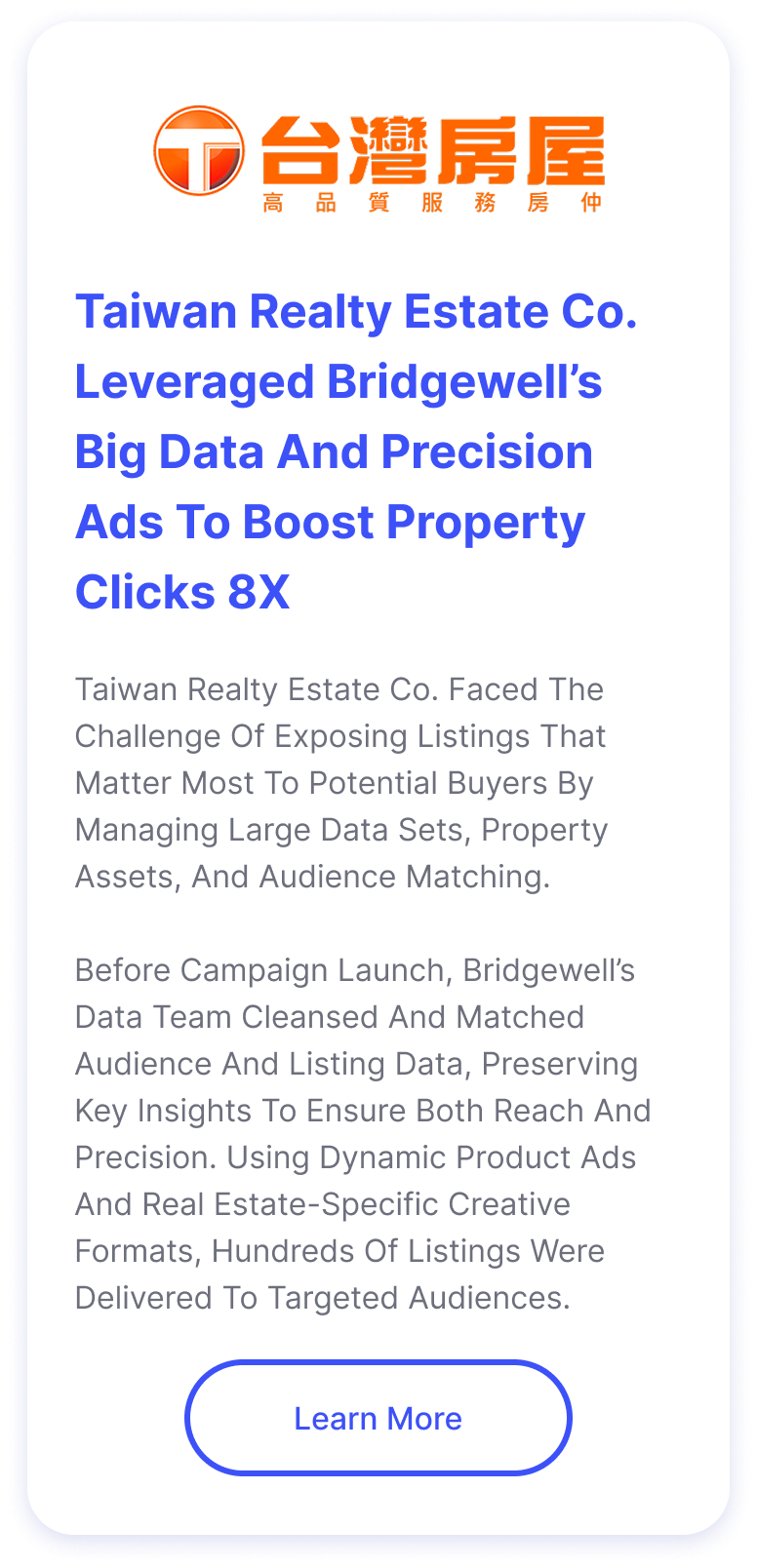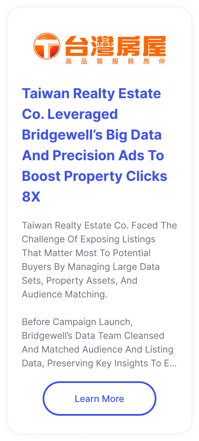 Awarded Google “Best Programmatic Platform” No.1 in Taiwan and the top partner by winning impressions—recognizing Bridgewell’s RTB bidding power and traffic scale.