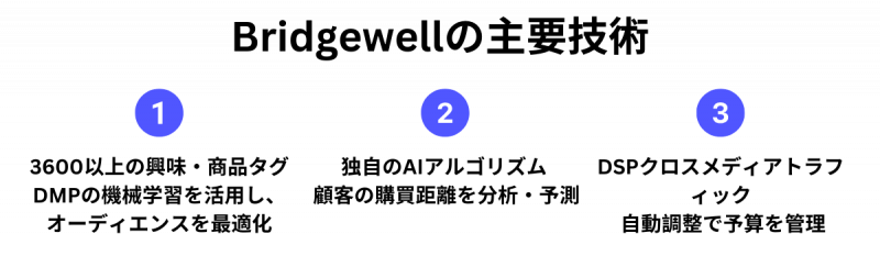 受け手の基本プロファイルを抽出した後、次に24時間体制でAI機械学習を行い、各広告配信後のクリック行動を分析・追跡します。これにより、Bridgewellが20年以上にわたり蓄積してきたEC行動データモデルと組み合わせ、好調なパフォーマンスのタグを取り入れ、不調なタグを排除しながら、最も精密な受け手グループを継続的に構築していきます。
