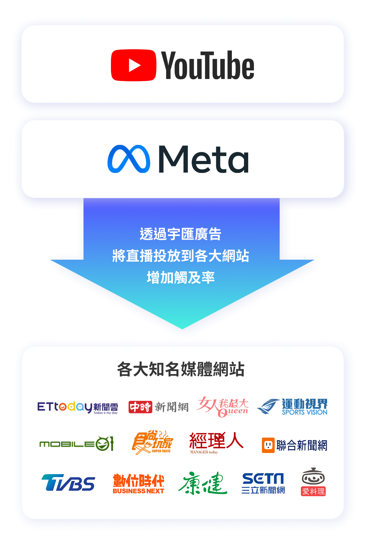 直播廣告即時投放到各大聯播網站,觀看人數立即增加,效果看得見!